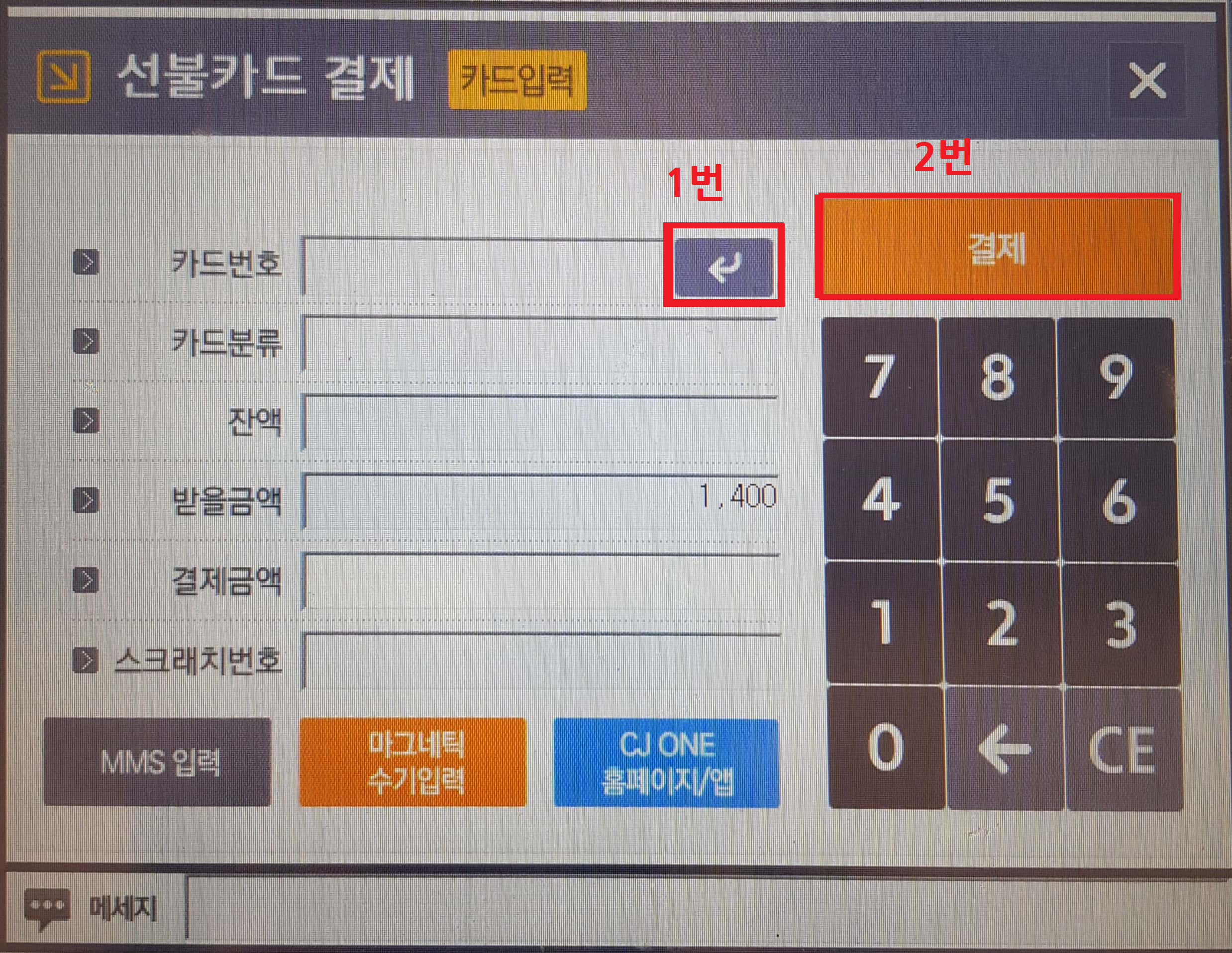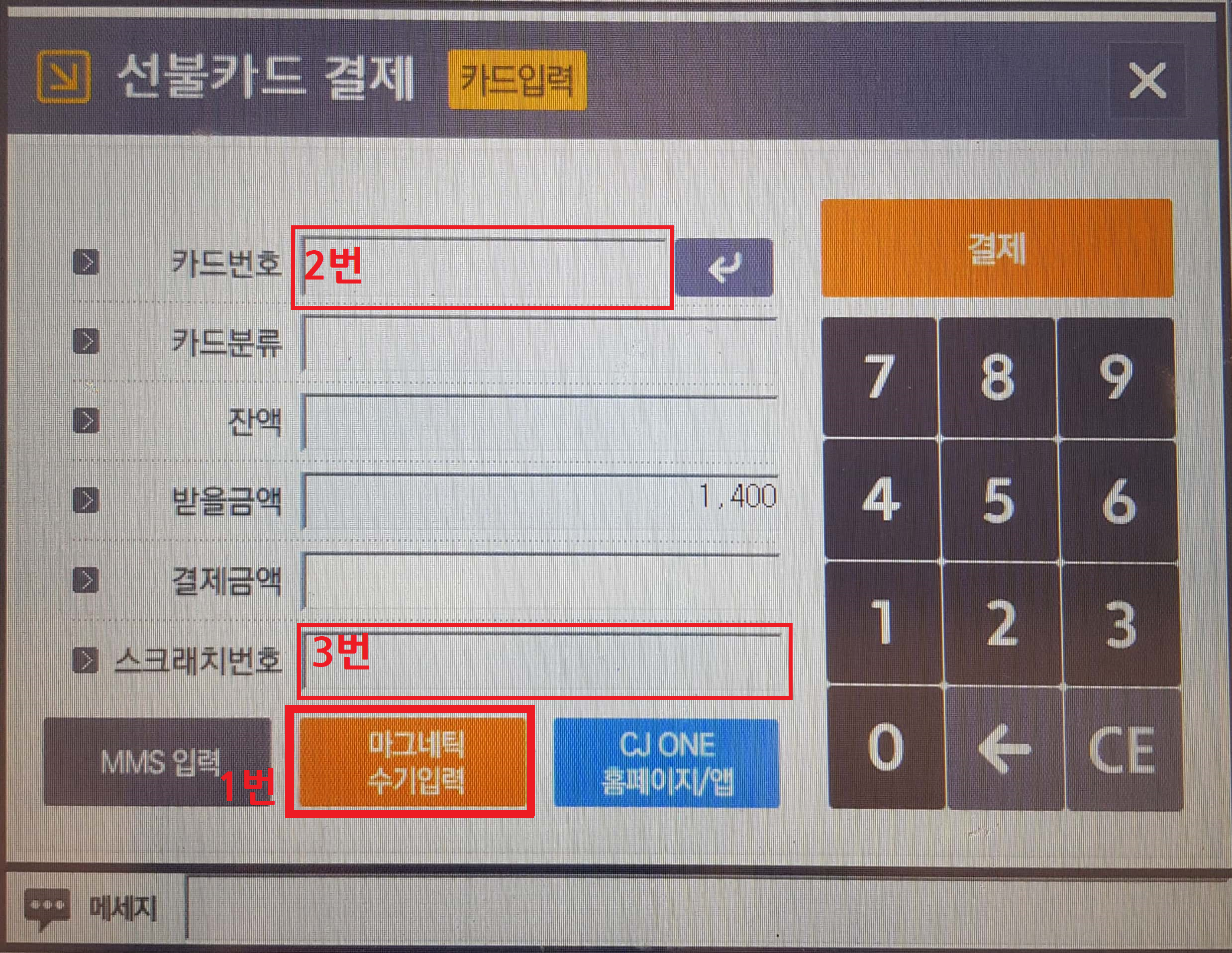 [고객이 CJ기프트카드 실물카드를 주는 경우]